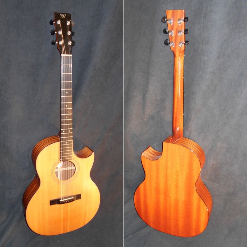 This has been another favorite for my live performances. There are quite a few You Tube videos playing Blues with Mare Edstrom featuring this guitar. The deeper body makes this one particularily loud and like all Northwoods, very versatile. I recorded quite a bit of "Malakai's Rainbow" with this one as well.